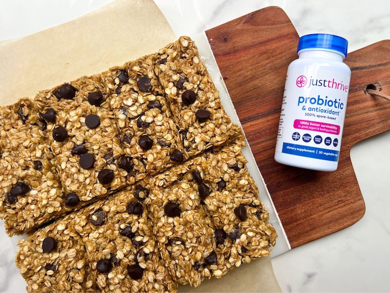 - Just Thrive Probiotic: Supports digestive, immune and total-body health. It also can help address issues like bloating, gas, and constipation. (A great and easy way to support your gut health!)