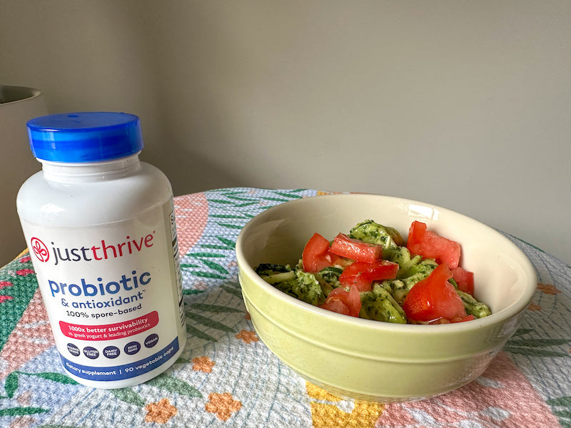 Looking for a satisfying & healthy pasta 🍝 dish with a spin? I’ve got you! Check out this homemade probiotic pesto to add to any noodle dish of your choice. It’s made with Just Thrive Probiotic! It’s a tasty way to sneak in some probiotics into your day!