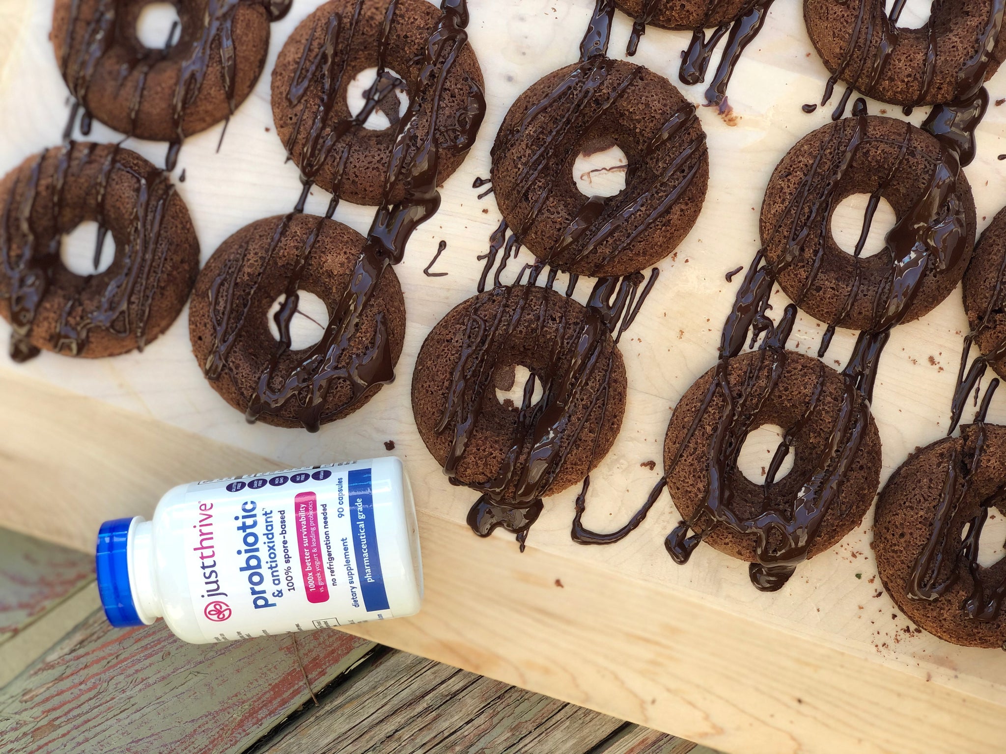 Since I started using Just Thrive Probiotic, I have noticed an incredibly positive difference in my gut health. And upon reading further up on the product – and realizing I could bake with them without destroying their beneficial bacteria – I’ve been adding them to everything: including my donuts!