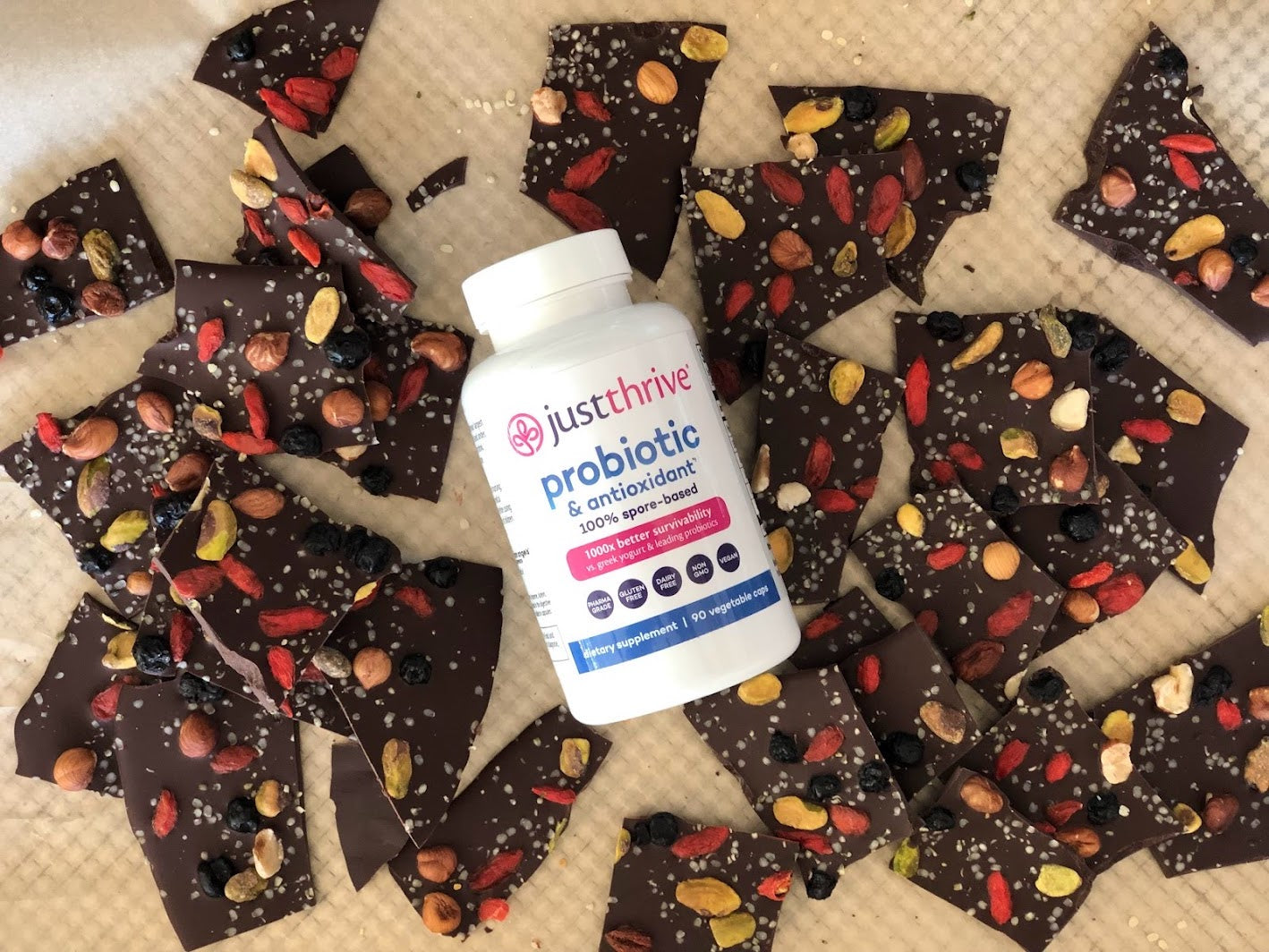 Just Thrive Probiotic + dark chocolatey goodness makes for the perfect healthy Valentine's Day treat. Ready to dive in?
