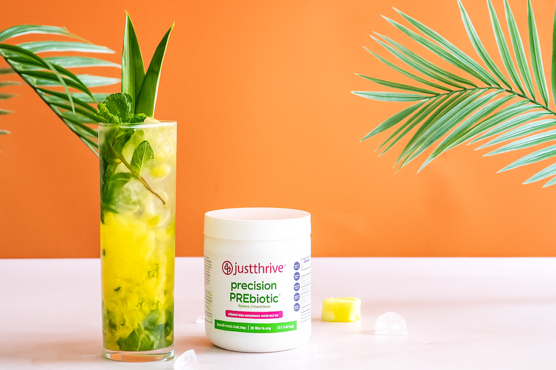 You know those drinks that instantly transport you to a beach somewhere warm—even if you're actually just sitting at your kitchen table in sweatpants? This virgin pineapple mojito is that drink. It’s bright, refreshing, and the kind of mocktail you’ll crave all summer long (or, honestly, year-round). But here’s the twist: It’s not just delicious—it’s gut-supportive, thanks to the addition of Just Thrive PREbiotic.