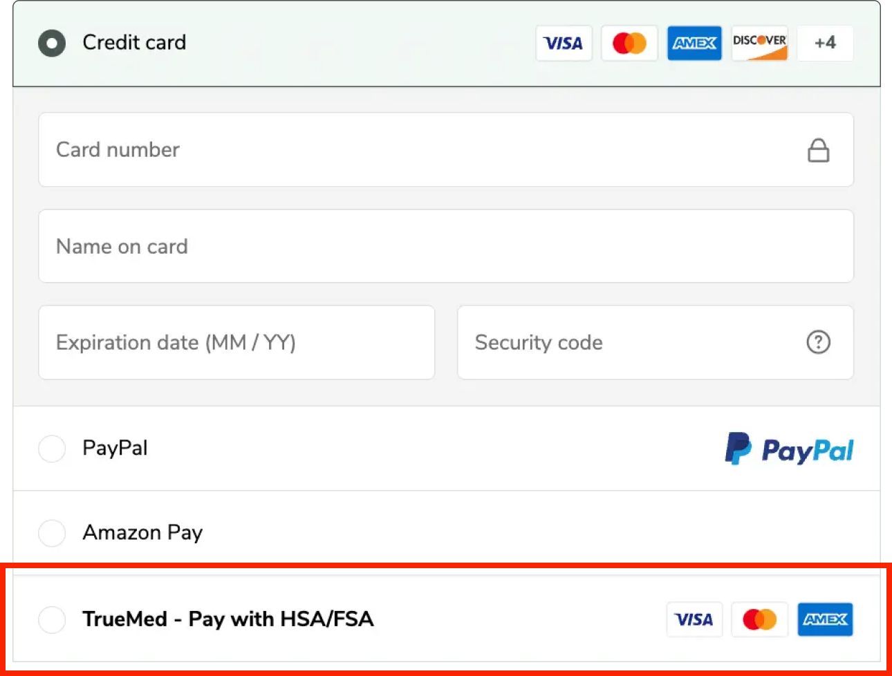 At checkout, choose “TrueMed – Pay with HSA/FSA” to use your HSA/FSA funds.