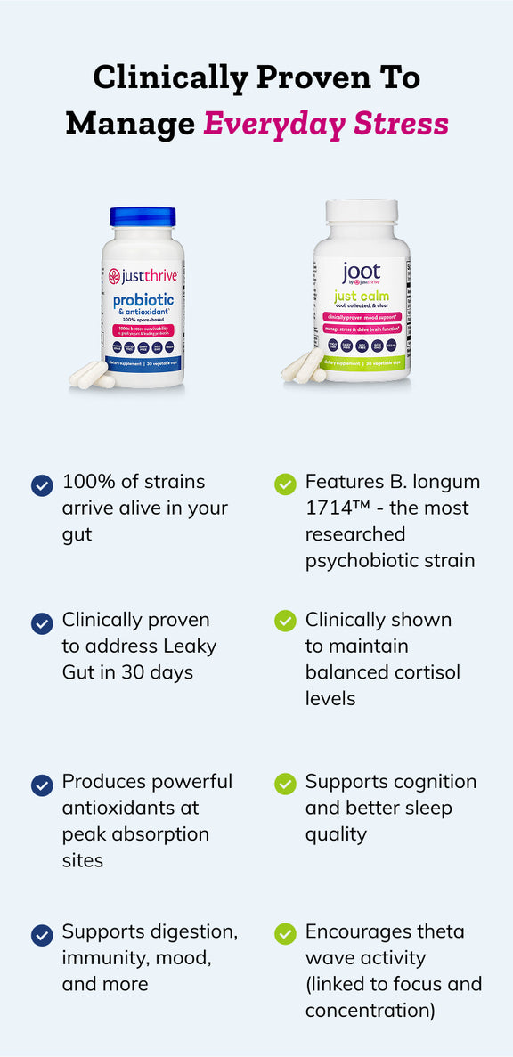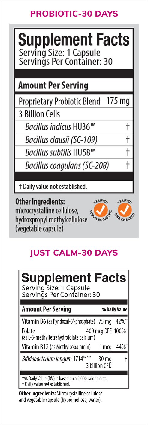 Just Calm’s power comes from pairing the brain-nourishing strength of 3 targeted B vitamins with the proprietary, heavily researched “psychobiotic” BL 1714™.