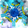 IgM antibodies have a unique shape that lets it grab multiple germs at once, like a fishing net. IgM bundles the invaders together so other immune cells can easily find and destroy them. It's also big in size, which helps it circulate fast through your blood to catch threats everywhere in your body.