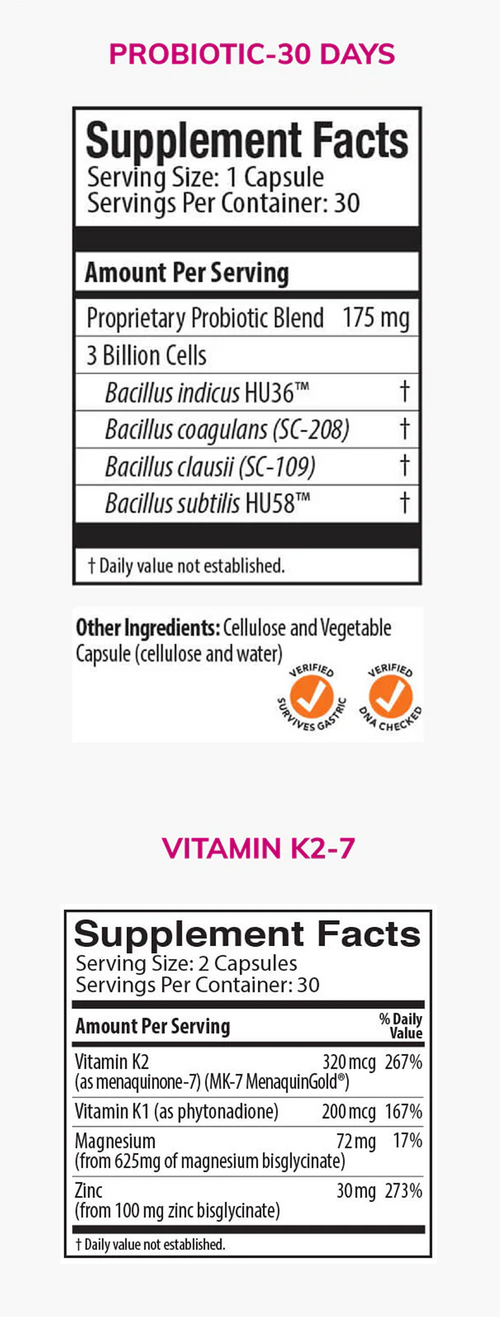 First, there aren’t any other similar products. There are K2 supplements on the market, but no product can match Just Thrive’s breadth of clinically verified research or the: