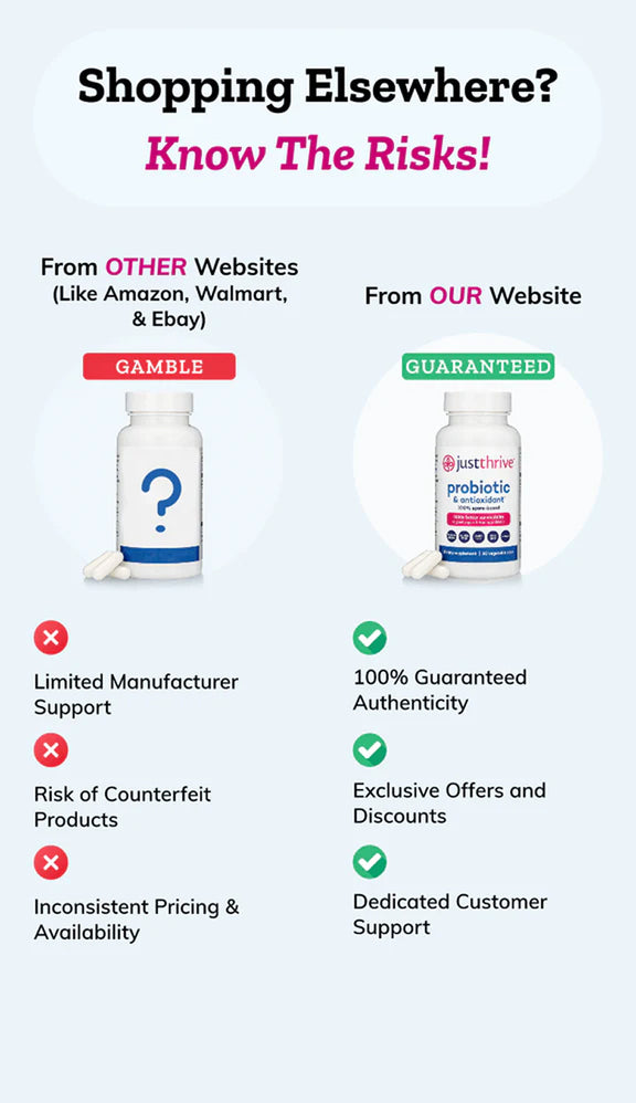 First off, there aren’t any other similar products. There are several probiotics on the market, but no product can match Just Thrive’s clinically verified research or best the following benefits: